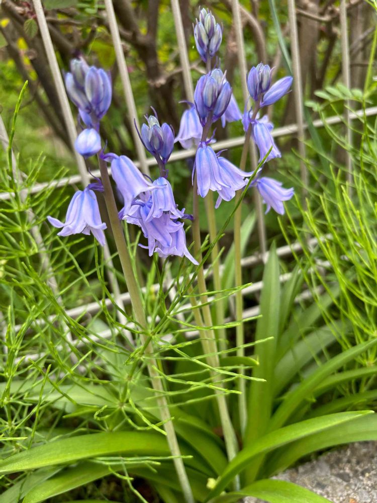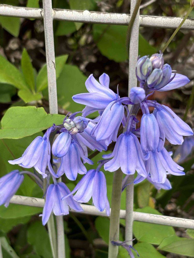 片側だけに花が付くので区別できます。花色はスパニッシュ・ブルーベルより濃いブルーです。