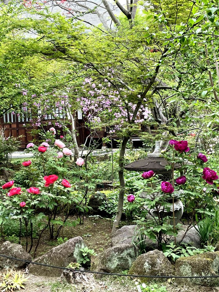 この寺には300本くらい牡丹が植えられていていろんな色の牡丹が見られます
