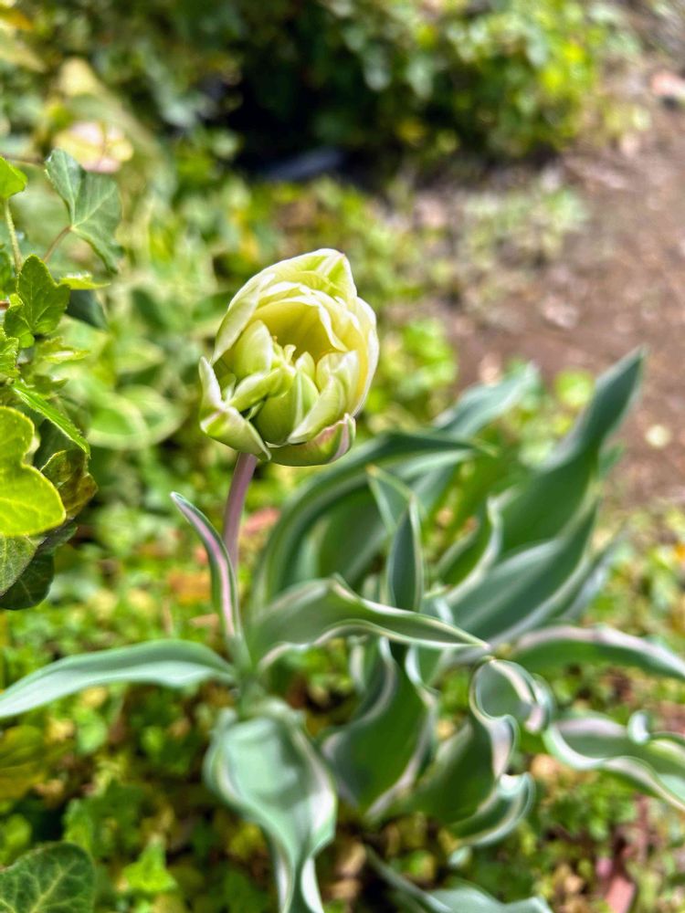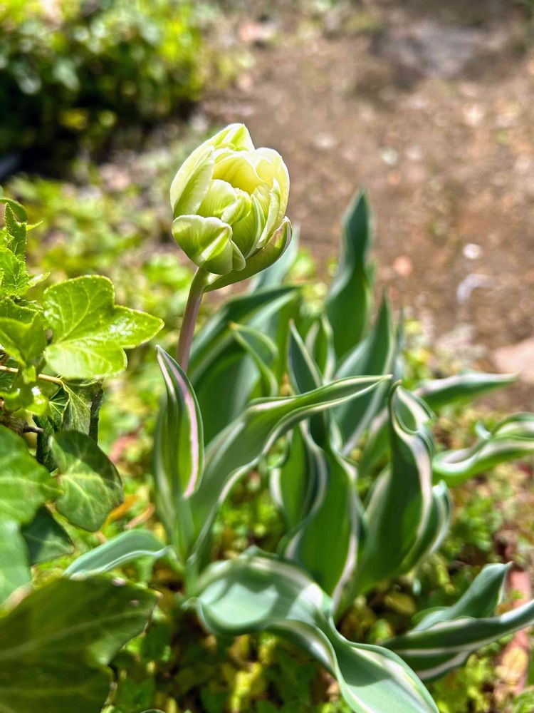 チューリップの斑入り初めて見ました🌷👀ピンクの斑?🩷グリーンの花💚