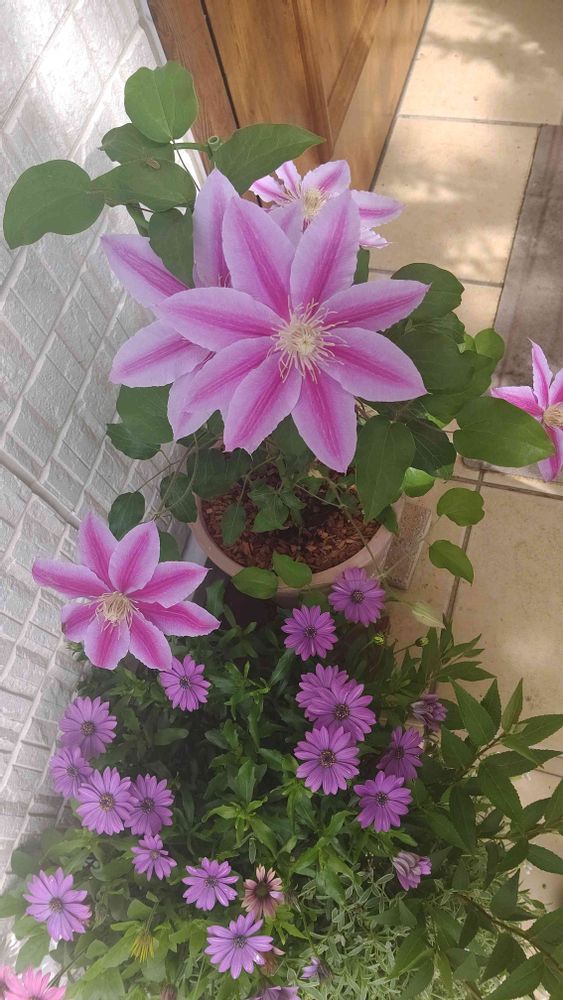 玄関アプローチ,クレマチス ドクター・ラッペル,オステオスペルマム サニーエレクトラの投稿画像