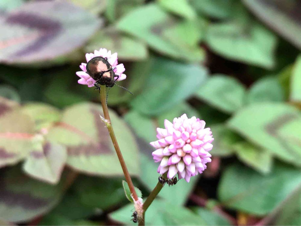 ポリゴナムの花に止まったドウガネツヤハムシ