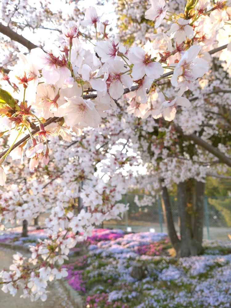これが噂のあの公園、芝桜ですね🥰紫系の優しいお色、桜もほんのり薄紅色🤍💗