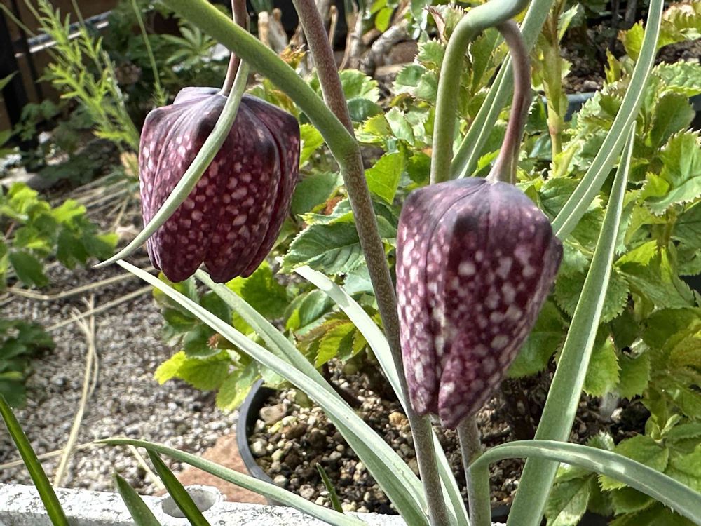 ①今朝なかなか出ないと思っていたバイモユリがやっと咲いてくれました✨