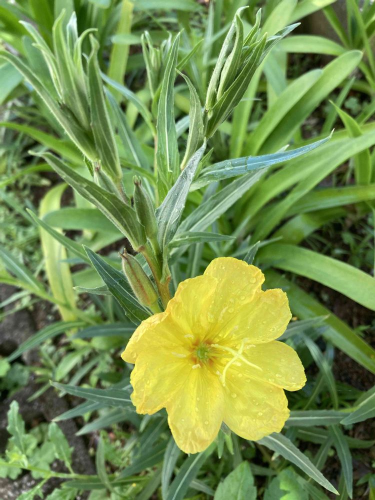 少し早い?暑い日が続いているから?なぜかマツヨイグサが咲きました。