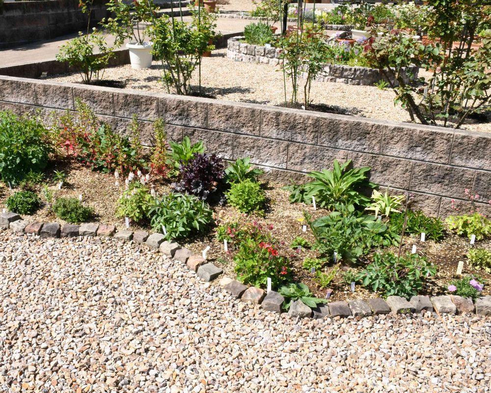 ピンク~赤の花壇にゲウムなどが咲いてきました😊