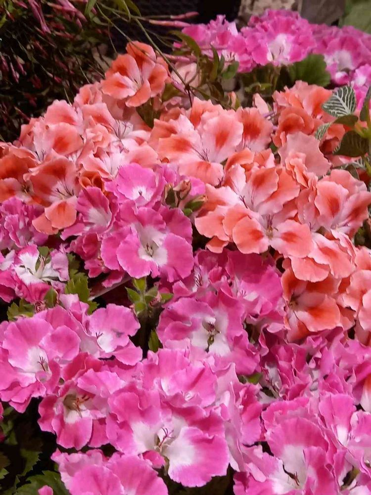 ③お出かけ先で見たペラルゴニウムの寄せ植え…キャンディフラワーシリーズの2色ですが右側のアプリコットカラー、可愛いくてパチリ📷