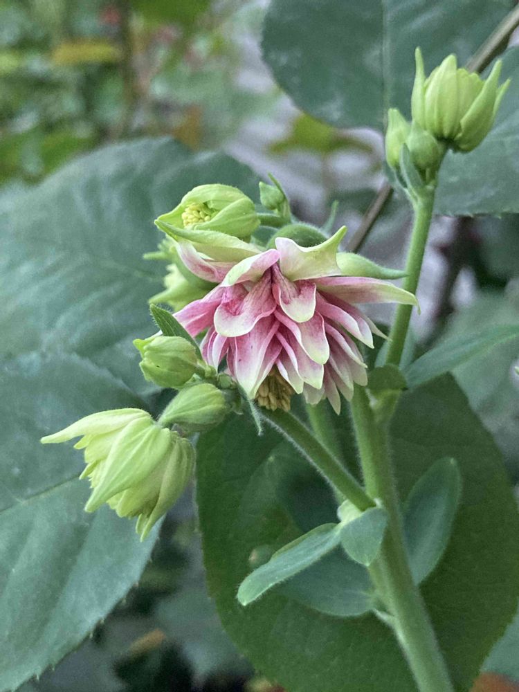 バラの鉢植えに溢れた種から2年かけて開花した西洋オダマキ ノラバロー🩷