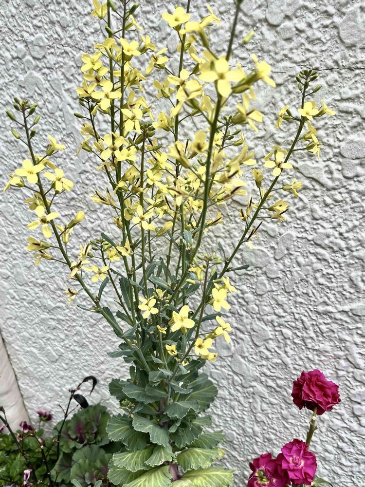ハボタンの先端の花芽を何度かカットして、脇芽を増やして小さな黄色い花が沢山 ‧₊.*॰✻.。゚