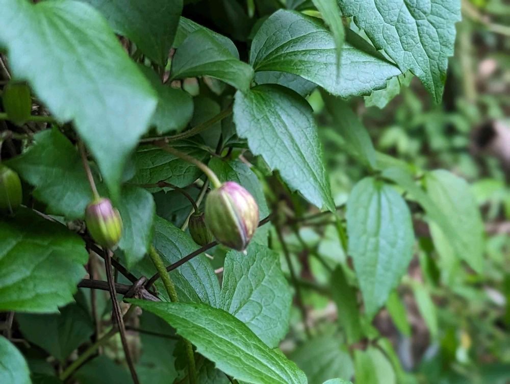 クレマチスの原種(?)のハンショウヅル、蕾だったけど咲いたところ見てみたい