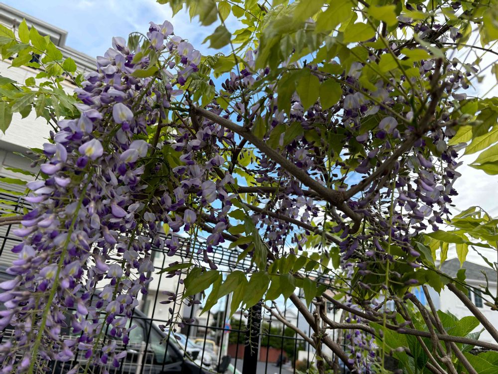 今日の散歩でもあちこちの藤棚で咲いてるのを見ました💜