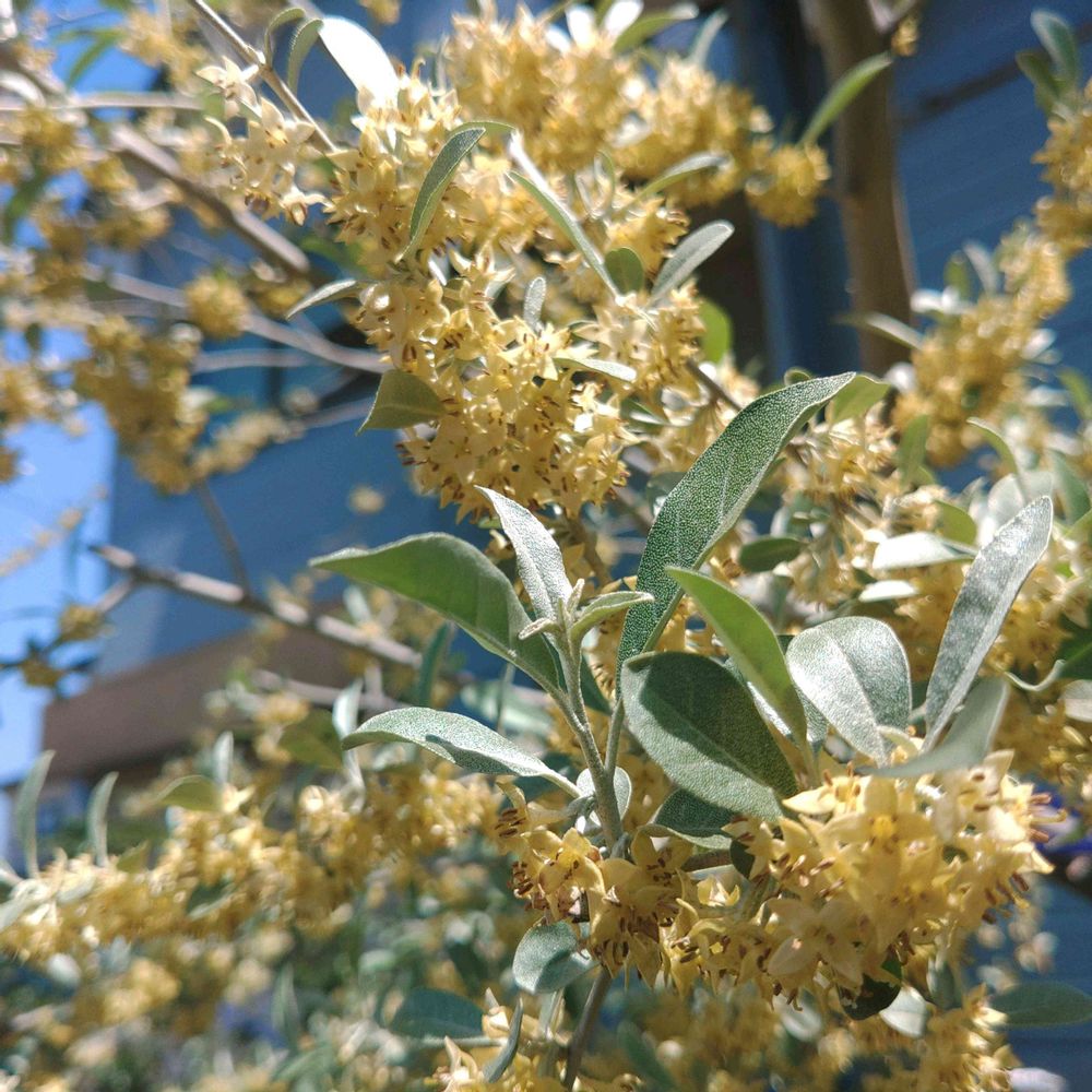 ロシアンオリーブも花がいっぱい咲いて🐝が蜜集めにやってきてます。