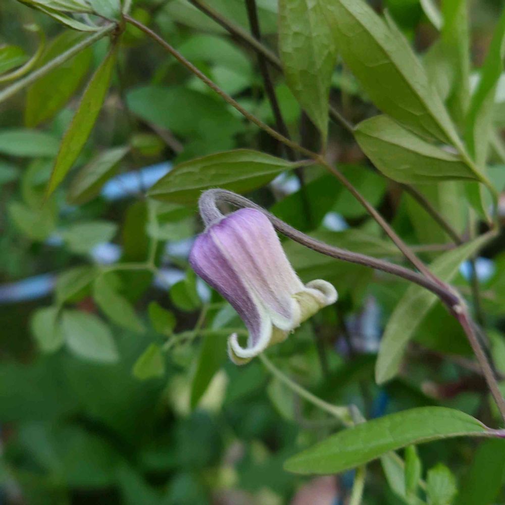 コレは残念ながら、ハッショウズルでは無いんです〜多分、藤かほり とか言う壺型クレマチスだったと思う〜ハッショウズルは我が家もあるけど、まだまだ咲いていません〜ちょっと一見似てるね😅