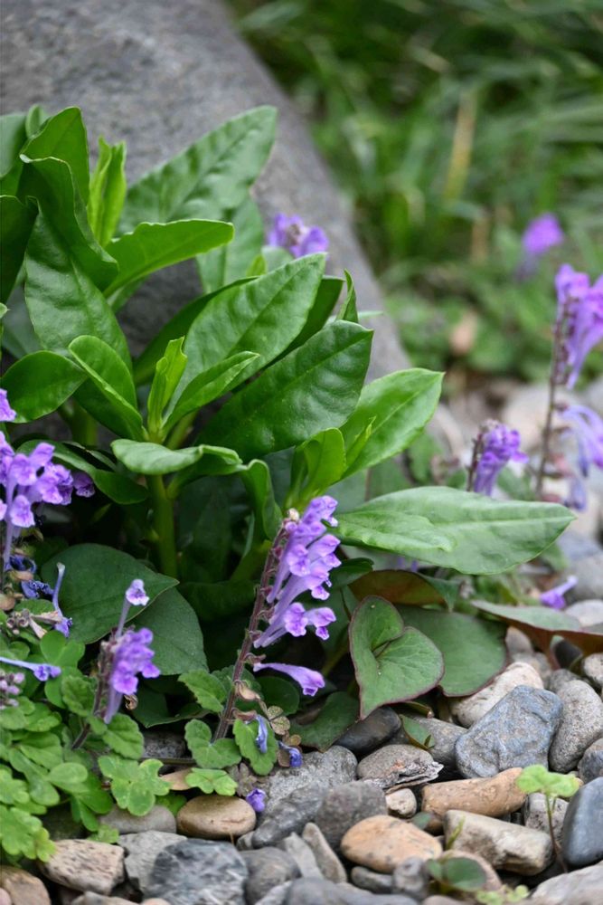 旅館の和庭園の石の間から自然に咲いている立浪草🌊🌊🌊