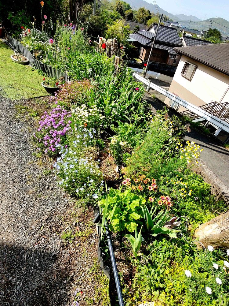 だた今年はちょっと…バランス悪く花がそれぞれ暴れすぎかな。来年は引き算しつつ、配置を考えなくては! 球根植物や宿根草、こぼれ種の花が増えて予定外に色々な花が咲いています💕