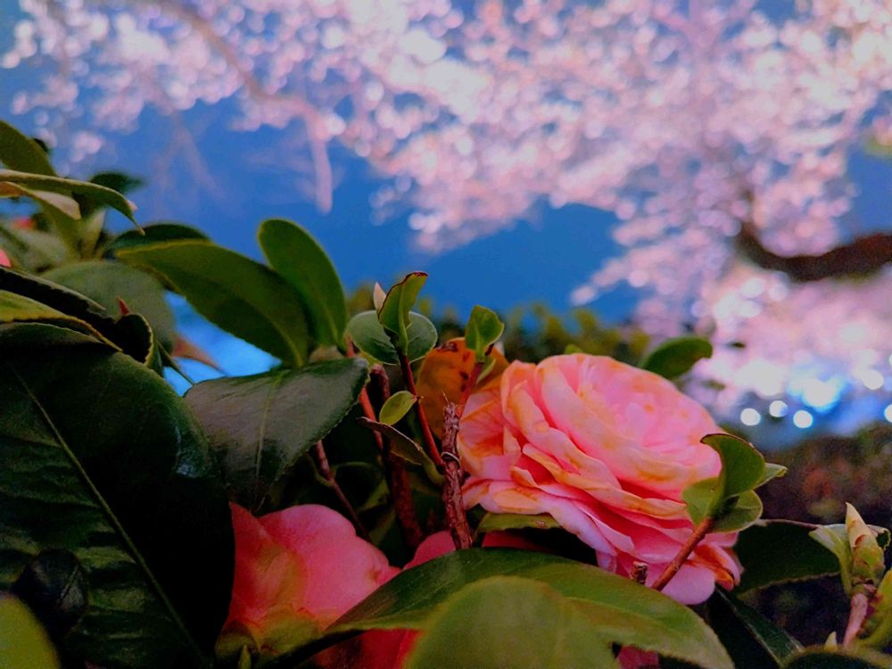 1枚目は夜の千鳥ヶ淵で撮影した椿❓山茶花❓と桜の組み合わせ🌸