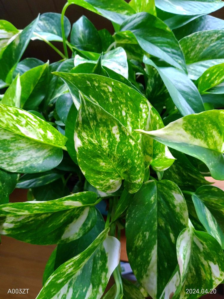 葉っぱの白と緑のかすれた其々の 模様の違いを比較して不思議を楽しんでます