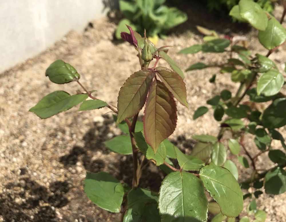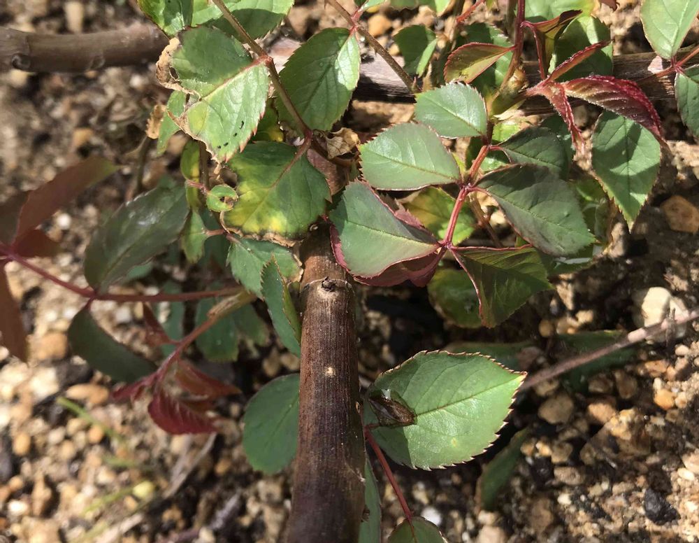 バフ・ビューティーは冬の間に枝部が茶色になってしまい、なんとか生き延びている状態。頑張れバフ・ビューティー‼️と応援し続けています。