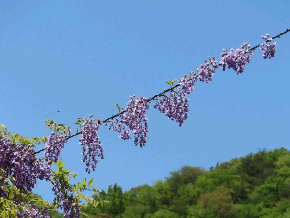 電線を伝って伸び、ぶら下がったお花が「鯉のぼり」🎏みたいに見えました。
