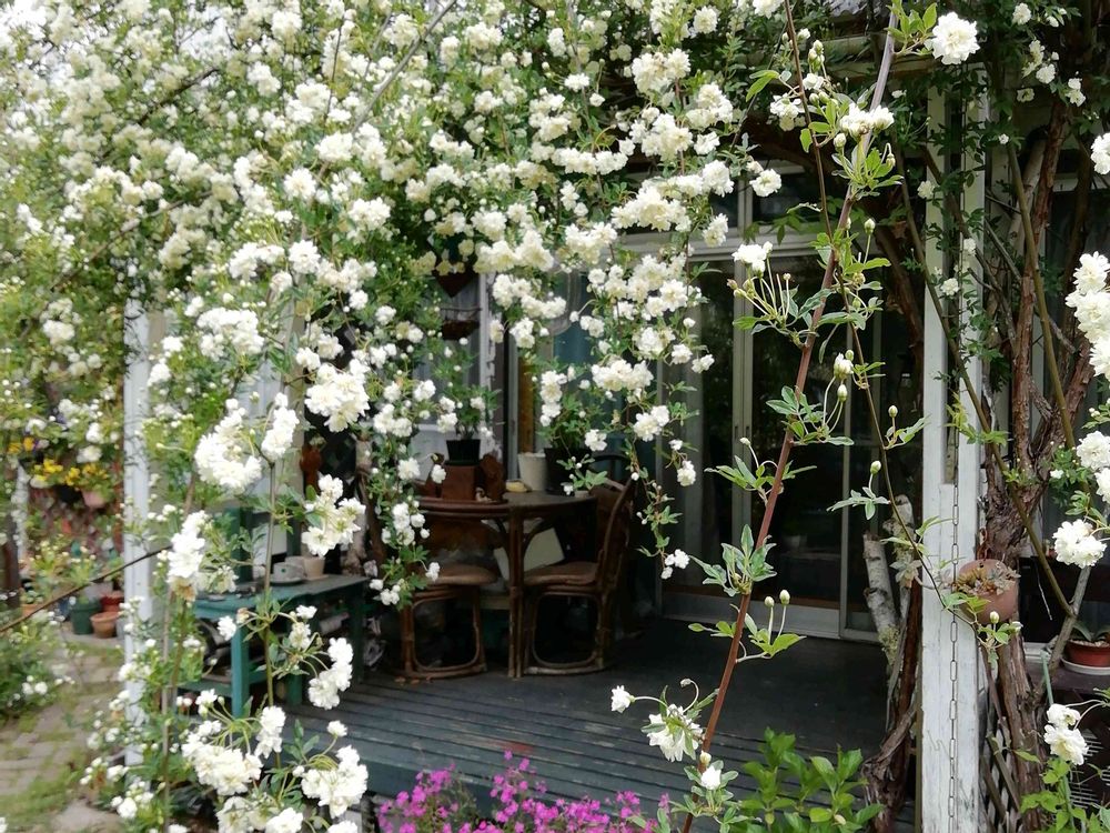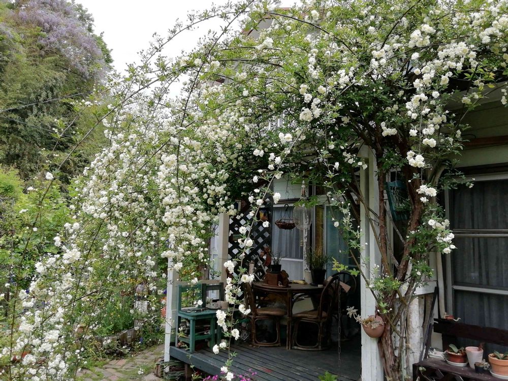 白は剪定が難しく、垂れる形は毎年変化のお楽しみ😆🚿