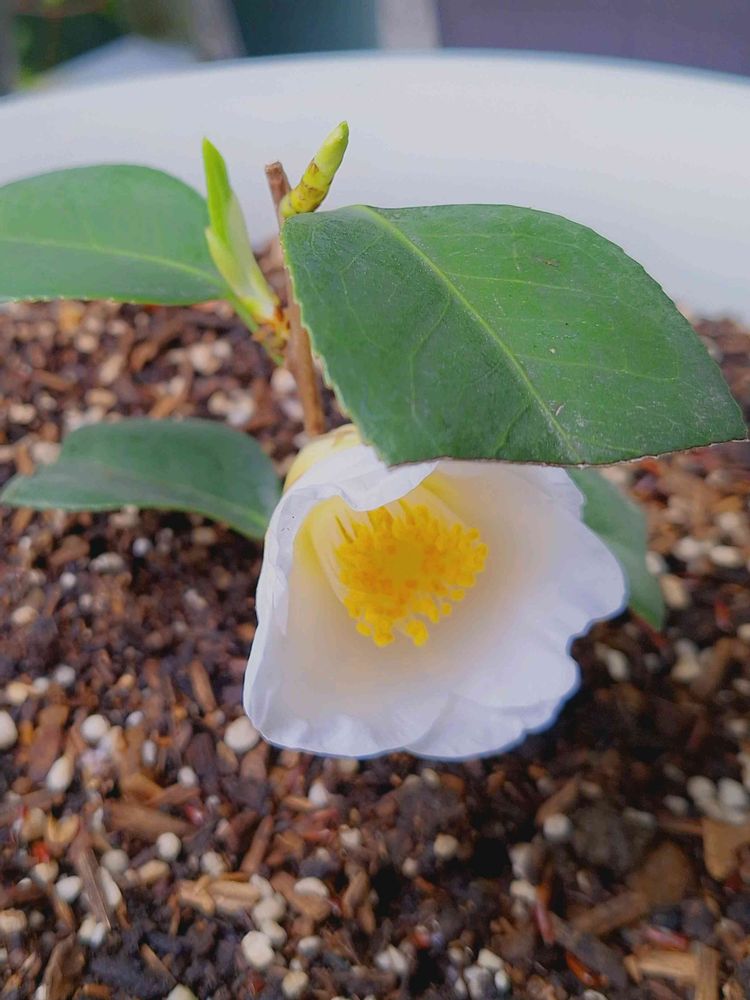 GS友達さんに白い椿の挿し木ツボミ付きを頂いて開花
