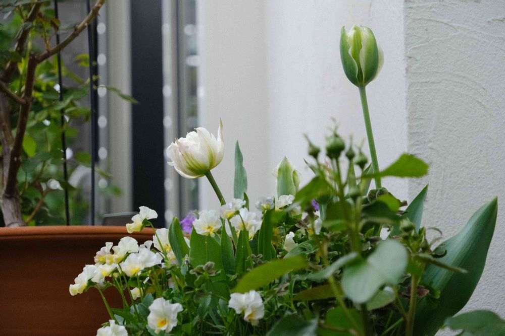 sakuさんのクレマチス ピクシー,チューリップ・マウントタコマ,チューリップ・スプリンググリーンの投稿画像