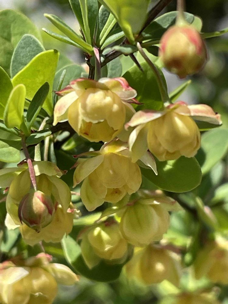 メギのお花、小さな花が並んで咲いて、かわいいですよ〜💕