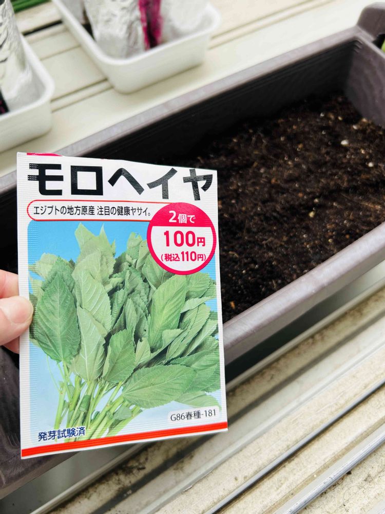 さっきのプランターにはモロヘイヤを植えたいと思います∠( ̄^ ̄)