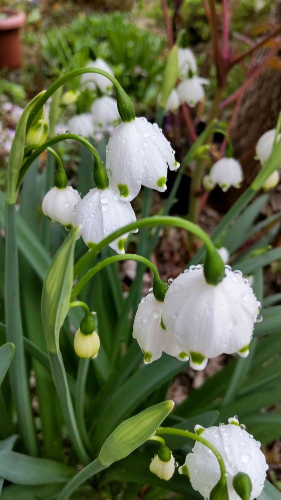 ①スノーフレークが咲き出し、雨粒が可愛いあめつぶ💧