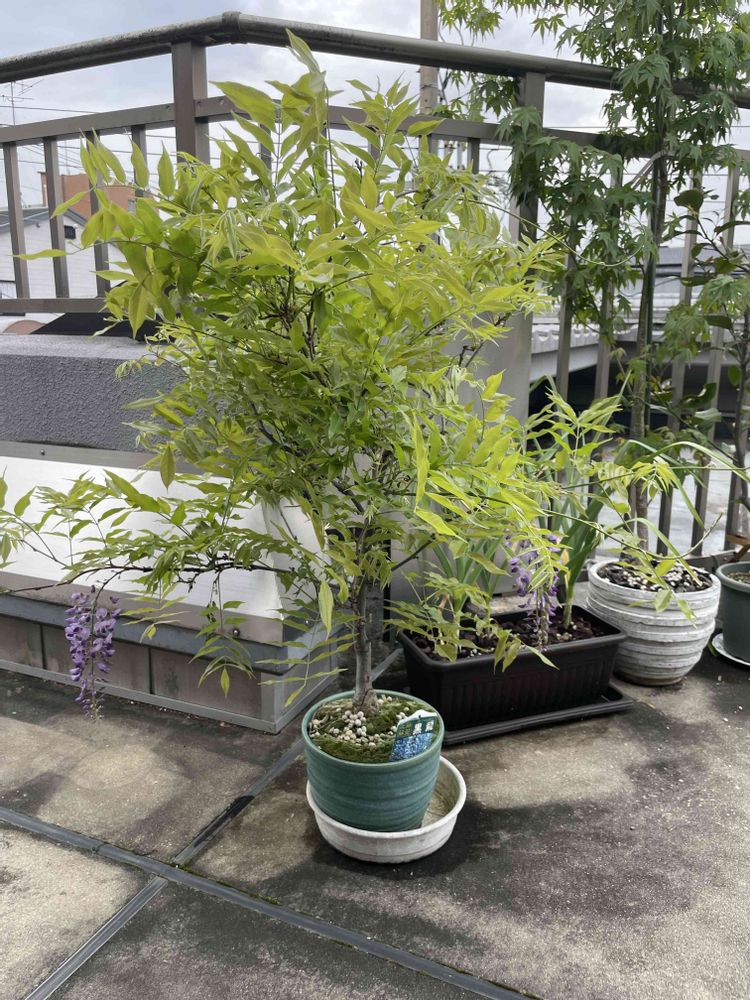 今年は藤の花が2房しか咲きませんでした。代わりに緑はわんさか茂っています。花がたくさん咲かないのはやっぱり栄養不足なのでしょうか?