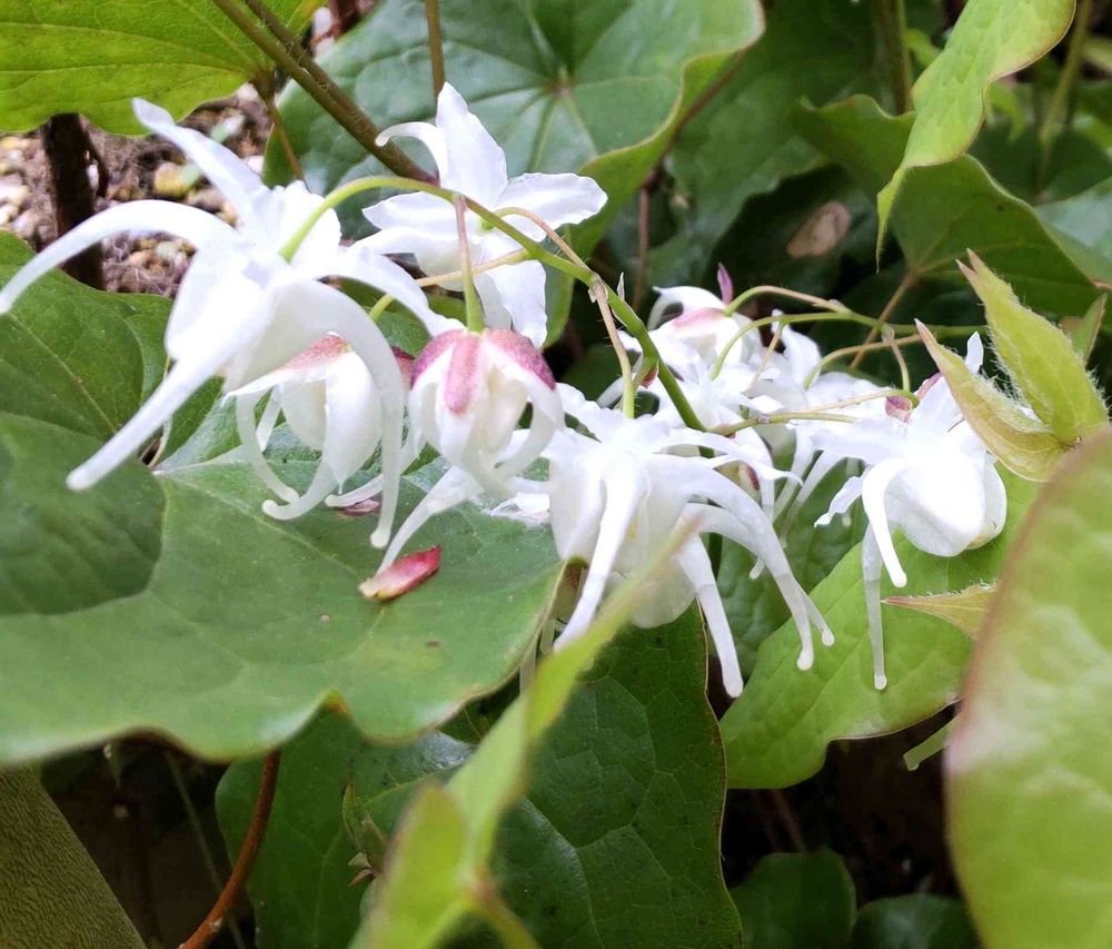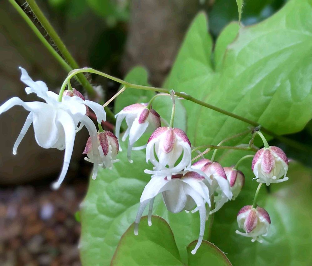 白いイカリソウも蕾から開花で彩りも より優しさに溢れています。