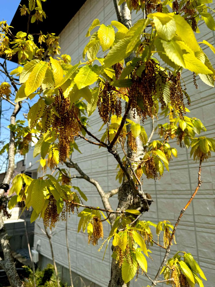 オウゴンカシワの芽吹き。今年は何故かはじめから緑色が濃いような?