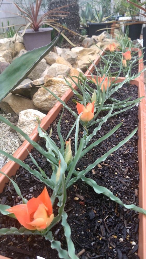 このチューリップは原種チューリップのサーモンジェムと言いますよ😊 咲き始めは茎が短くて面白いです😄