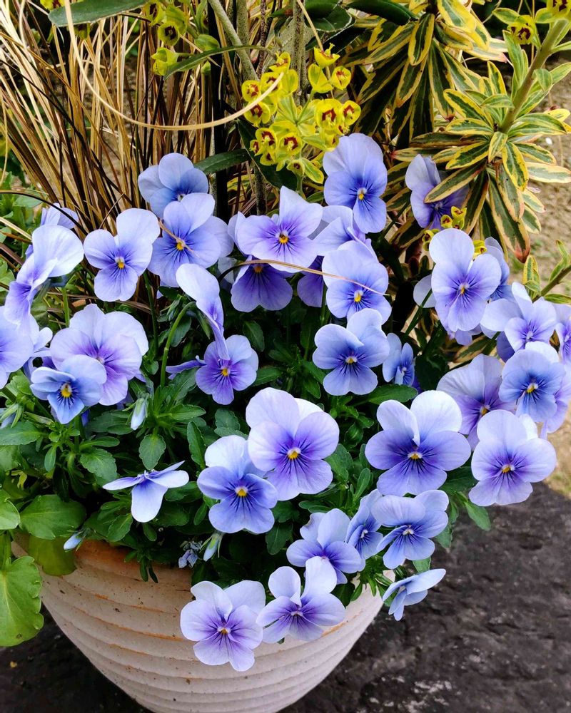 名無しビオラですが 良く咲いてくれました♪ 購入時は ヘブンリーブルーのような 淡い水色でした。