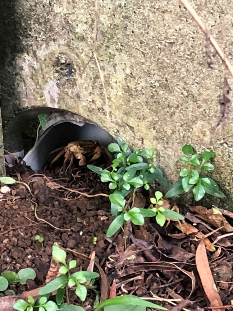 カニさんのお昼寝ゾーンなのね。かわいい訪問客🦀🦀🦀💕