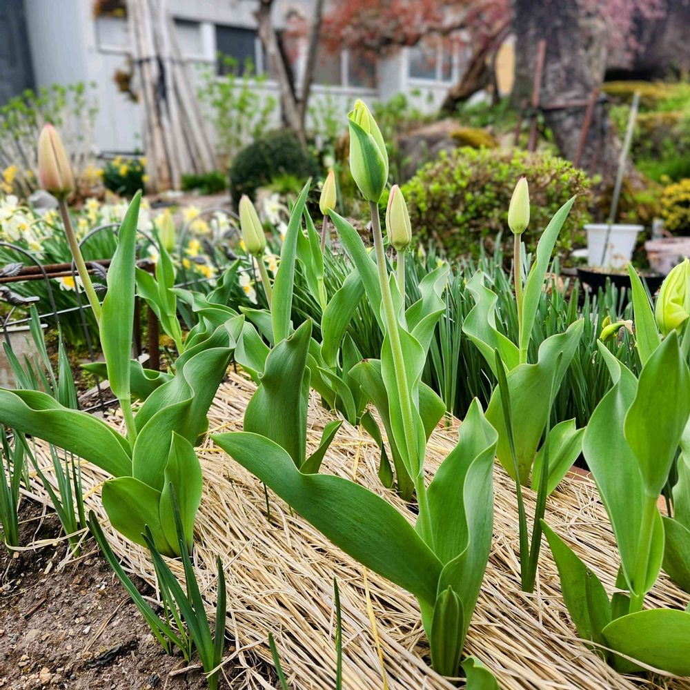 4月に入り日増しに大きくなってきた私のミニ花壇の秋植え球根たち❤️チューリップも間もなく🤗