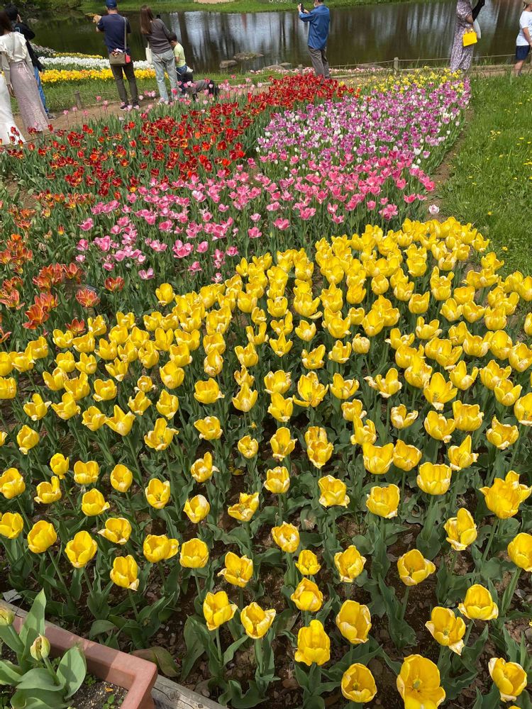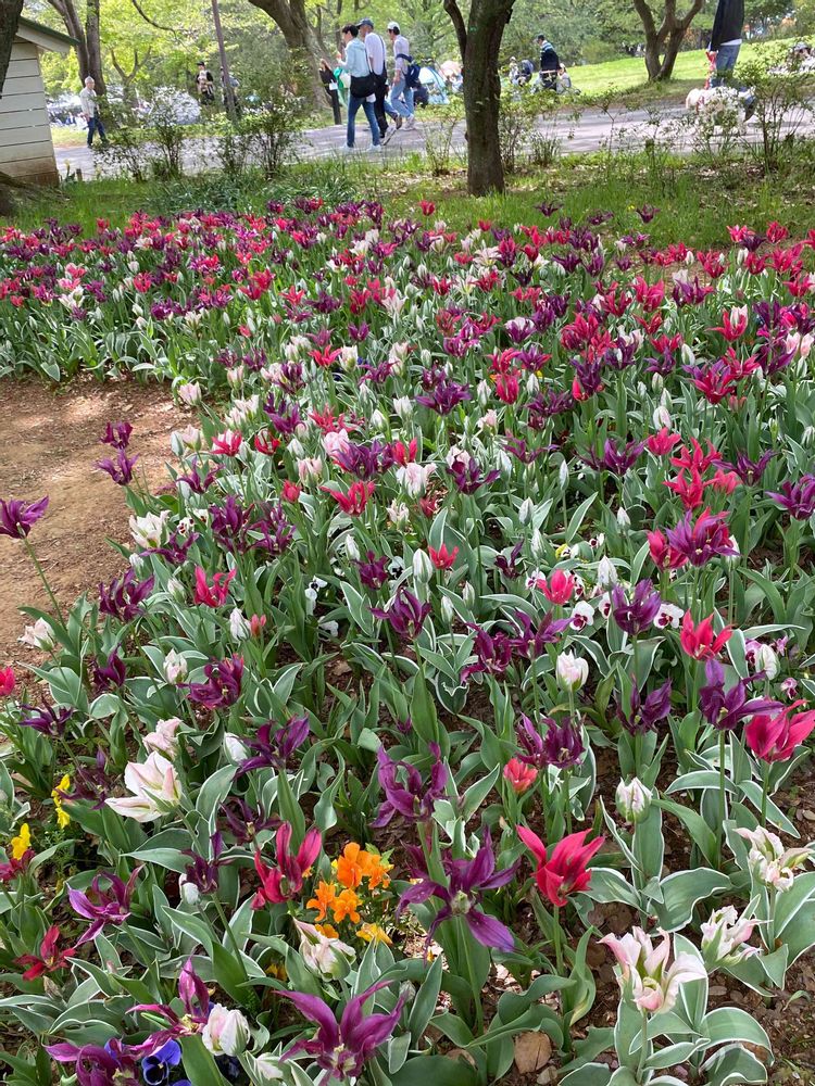 渓流広場一面に色とりどりの見た事もない種類のチュウリップ達の競演🌷