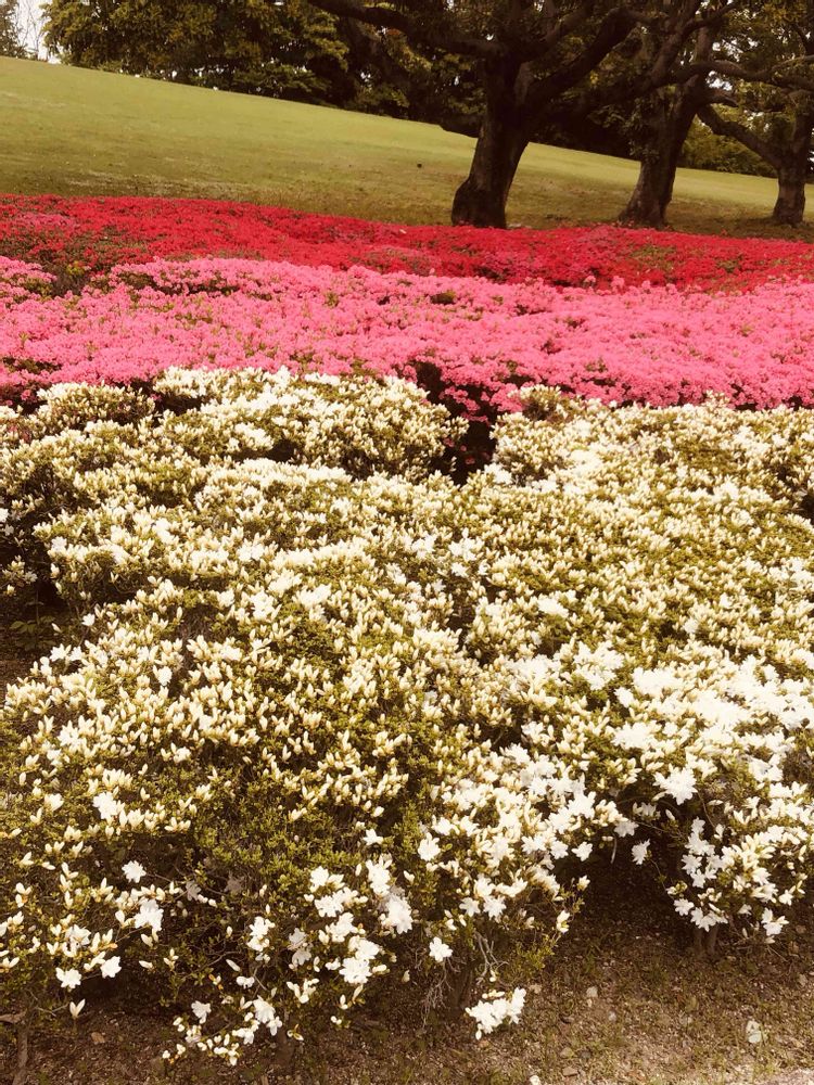 万博公園の日本庭園にて、満開の「クルメツツジ」をパチリ!📸🩷♥️🤍🌿😄🤗🌞✌️