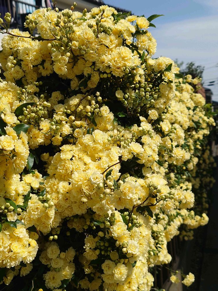 お出かけ先のフェンスに咲いていた「モッコウバラ」🌿💛