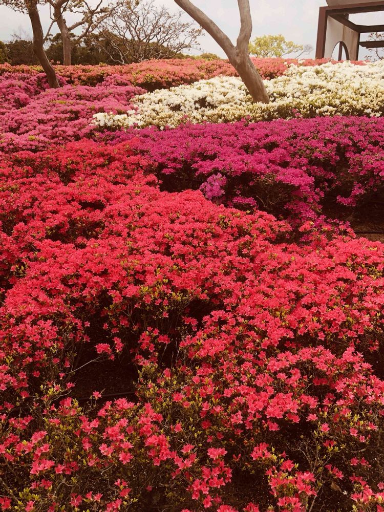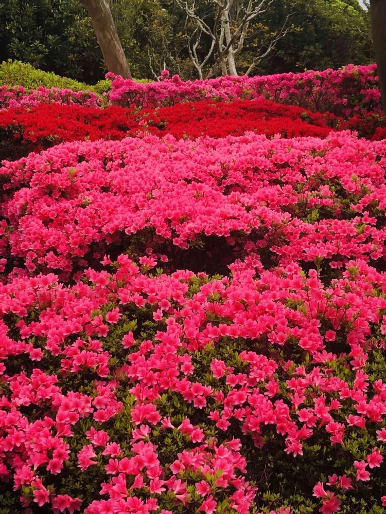 万博公園の日本庭園にて、赤色やピンク色の「クルメツツジ」をパチリ!📸♥️🩷🌿😄🤗🌞✌️