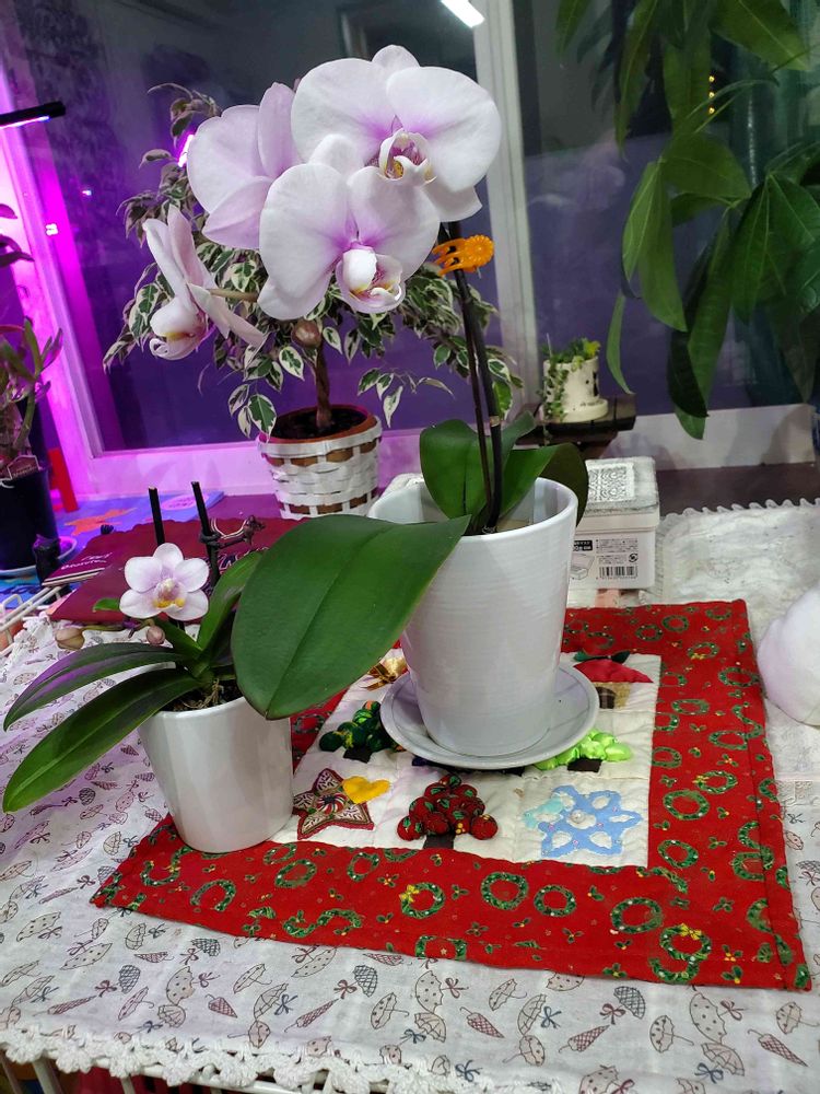 モニター当選したミディ胡蝶蘭と、スーパー開店記念セールで買ったミニ胡蝶蘭が、咲き終わって、再び二番花が咲き始めました❣️