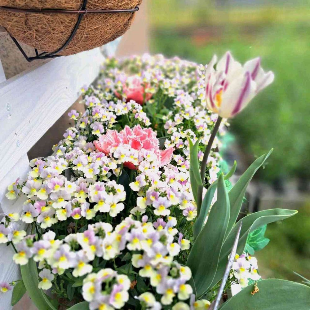 可愛いネメシアさん💕チューリップ🌷優しいお色で癒やされます💓🙋♀️