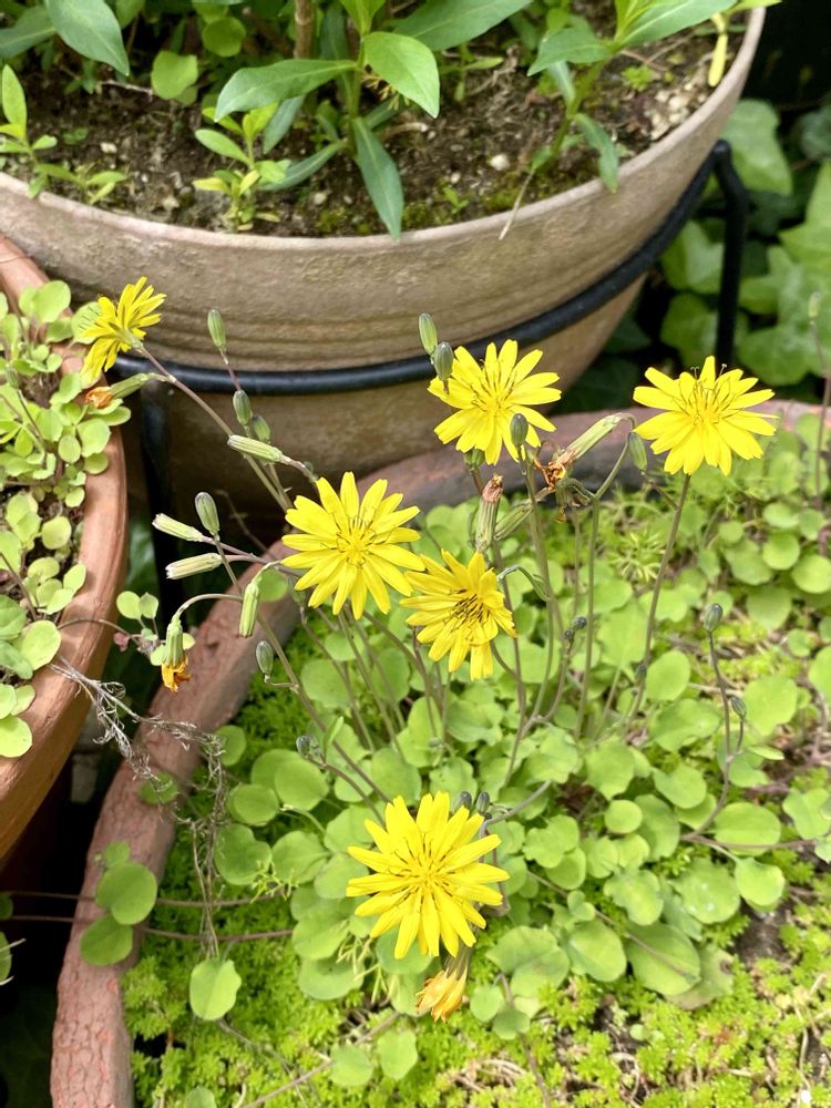 セダムの鉢に入り込んで、我が家気取りで咲いています。
