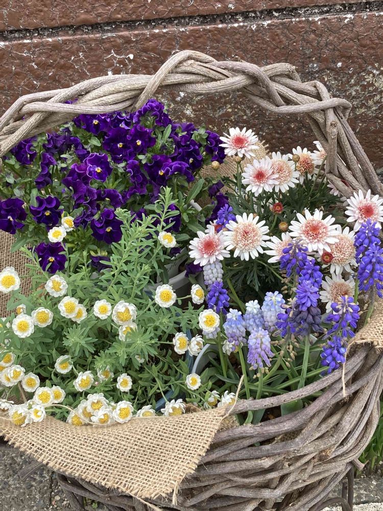 もう何年も前に葛の蔓で作ったカゴに🧺鉢を入れて