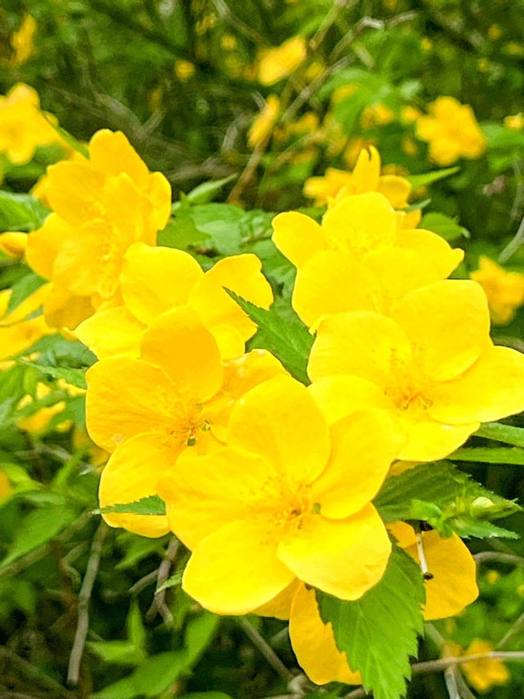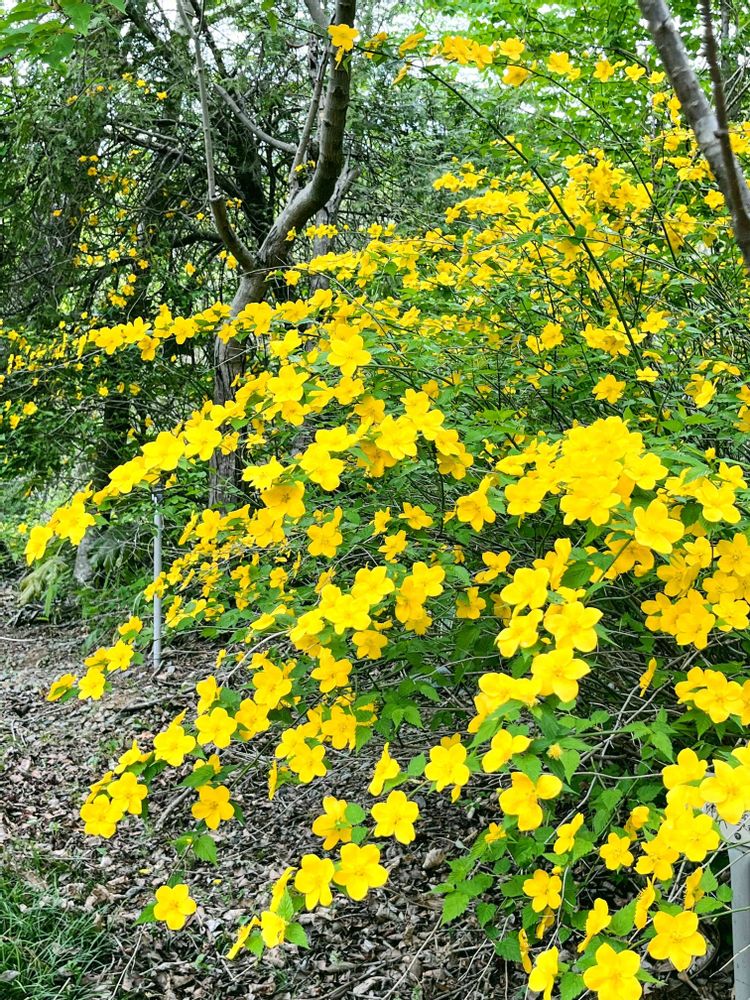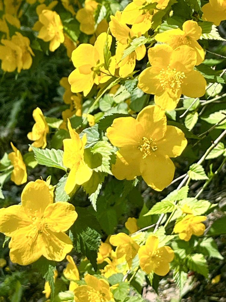 鮮やかな黄金色の花を咲かせるヤマブキ✨🟡