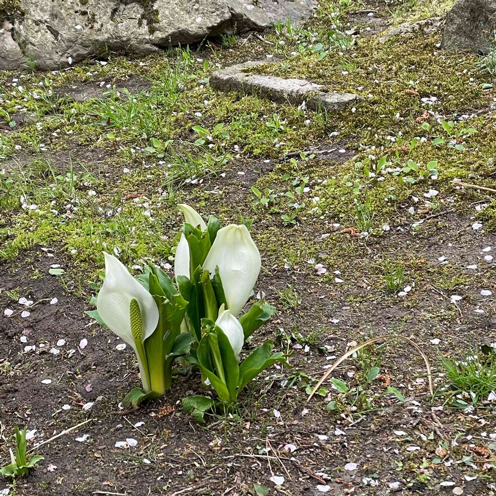 ミズバショウ、アミガサユリ、ゼンマイはまだクルリンと円形に。