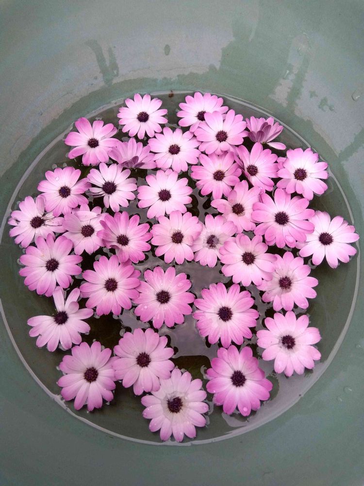 終わりに近づいた花びらを睡蓮鉢に浮かべての遊び心を愉しんでみました💞💚🎶✨🥰