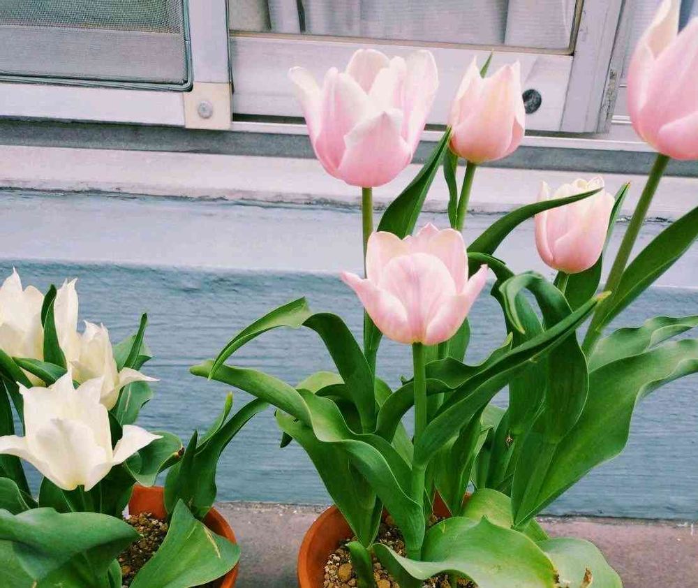 娘の家ヘ引っ越しした2鉢のチューリップ