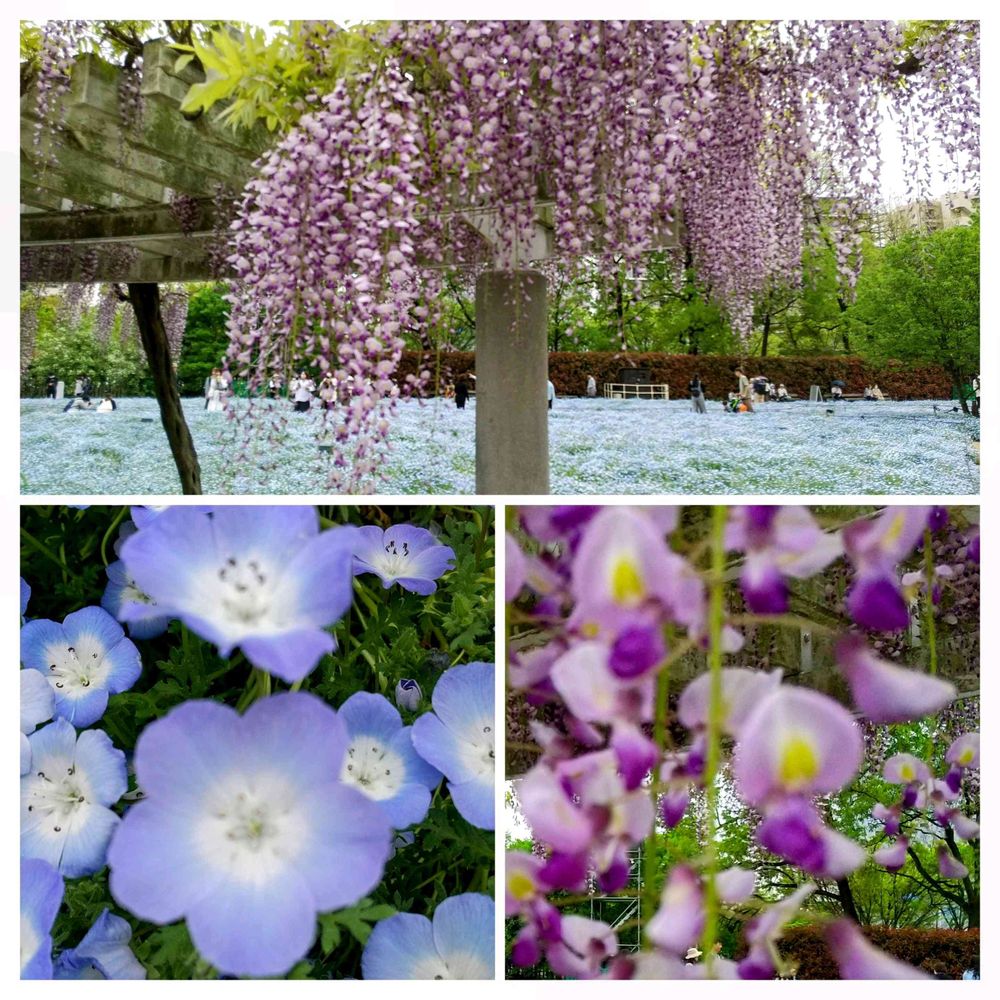 長居植物園のネモフィラと野田ふじのコラボレーション