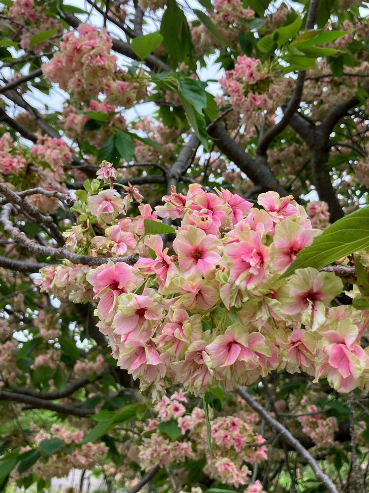 御衣黄桜、遅いかと思いましたが、花期が長いです。ピンクが強くなっていました。💚🤍💓💚🤍💓