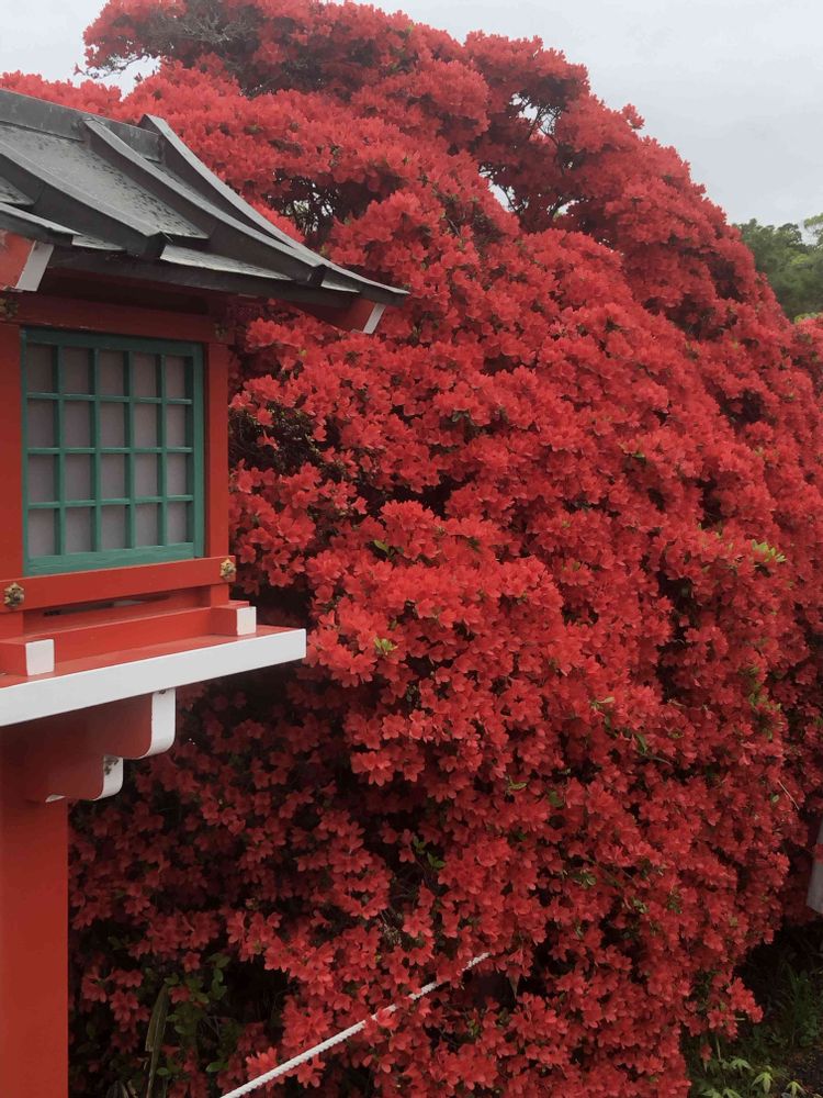 今日のお天気はパッとサイネリアしませんが、京都の長岡天満宮にて、真っ赤な「ミヤマキリシマ」をパチリ!📸🌺😊😄🌞✌️